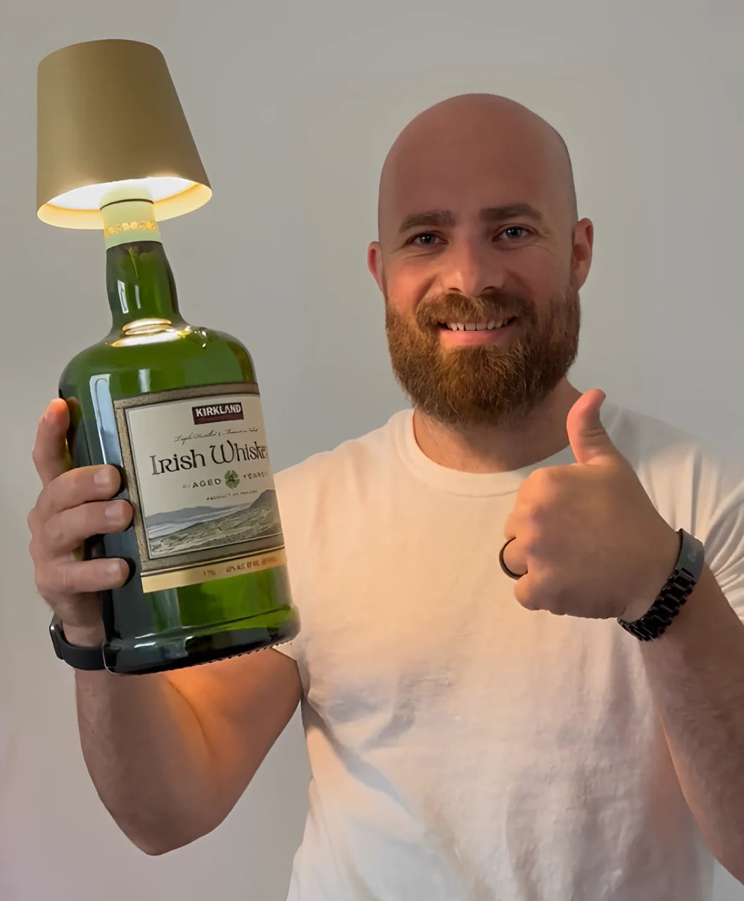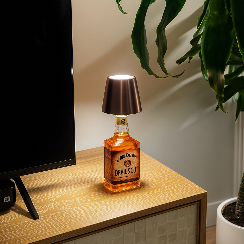 “Looks epic on my whiskey bottle—warm amber light that matches the spirit and softens the room. Seats snugly, taps to dim, and keeps the TV console clean without any cords.”