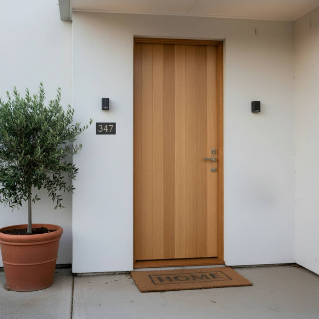 Yes—tape holds best on timber. For masonry or long-term use, choose the included screws and wall plugs. Switch each unit ON before mounting so it can charge and auto-activate at night.