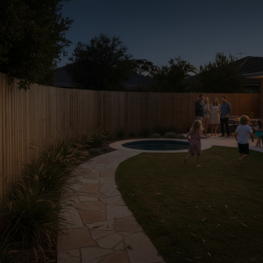 A soft, architectural glow runs along the fence like a single thought—no harsh hot-spots, no random dark patches—so guests linger and the space feels intentionally designed.